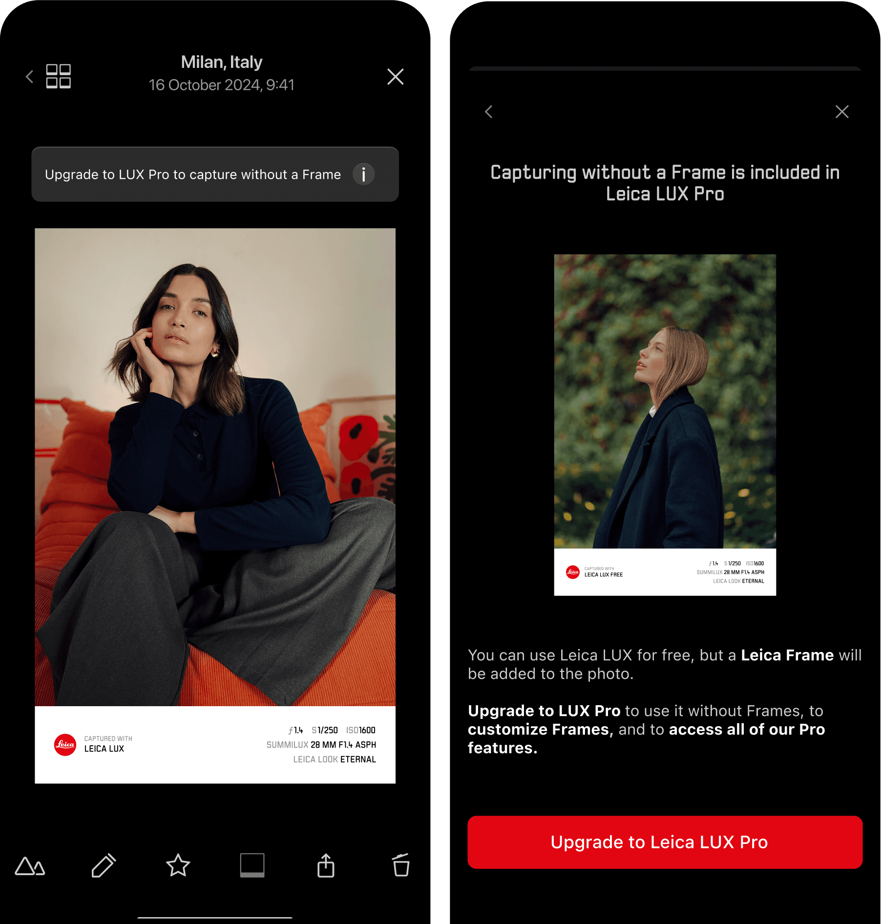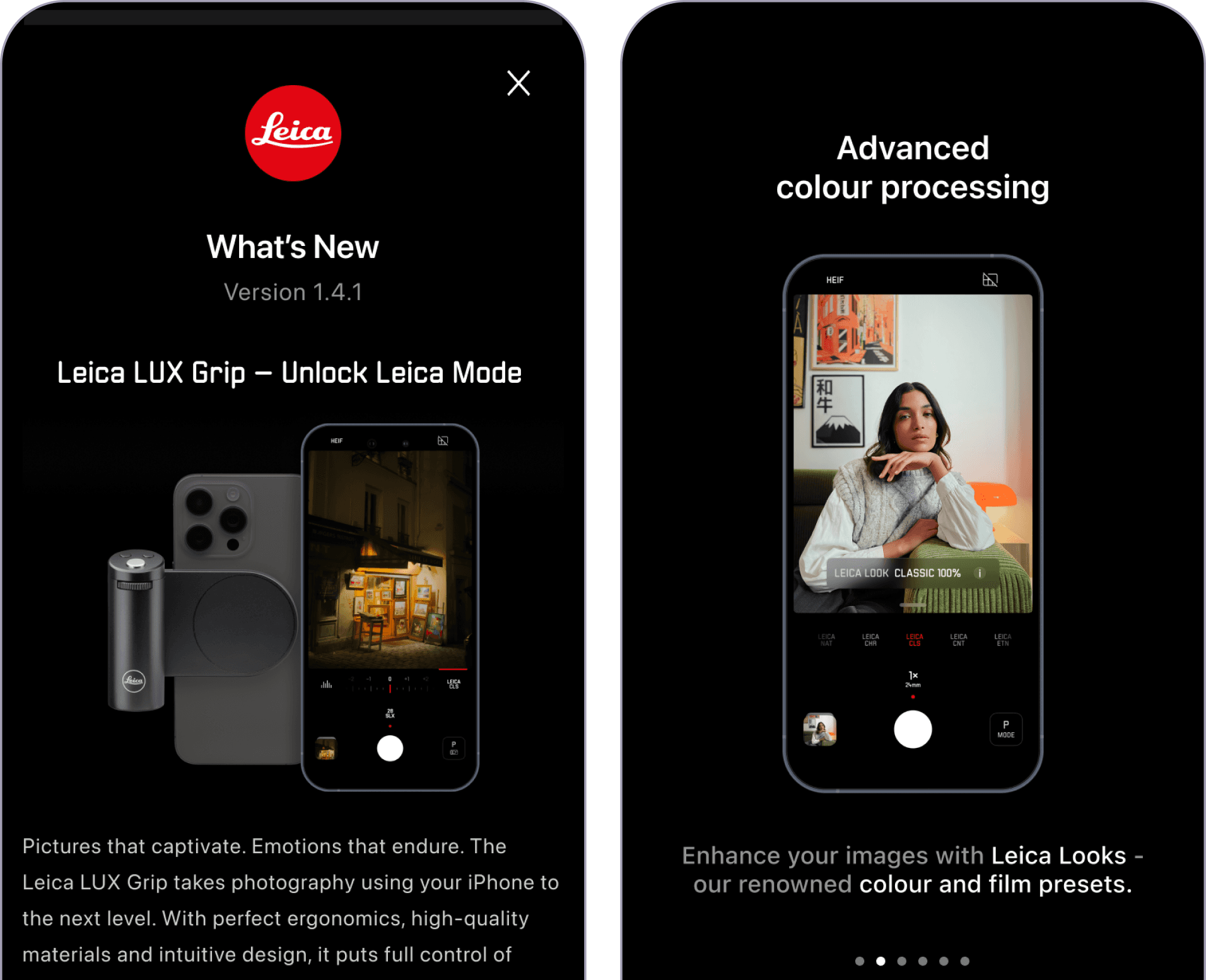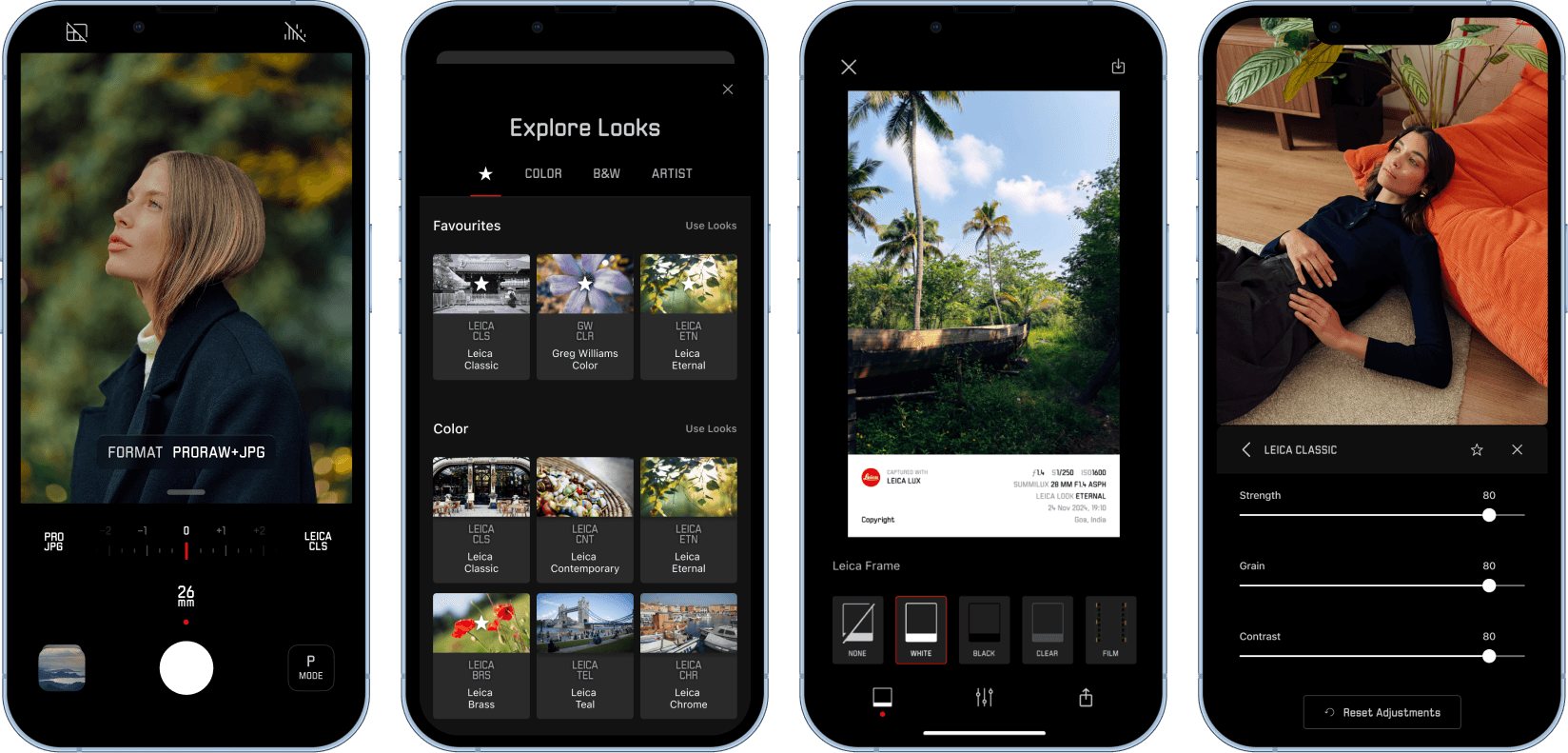 ✅ Select from a wide library of "Leica Looks". ✅ Adjust its strenght/contrast/grain. ✅ Access a wide library of growing Looks.