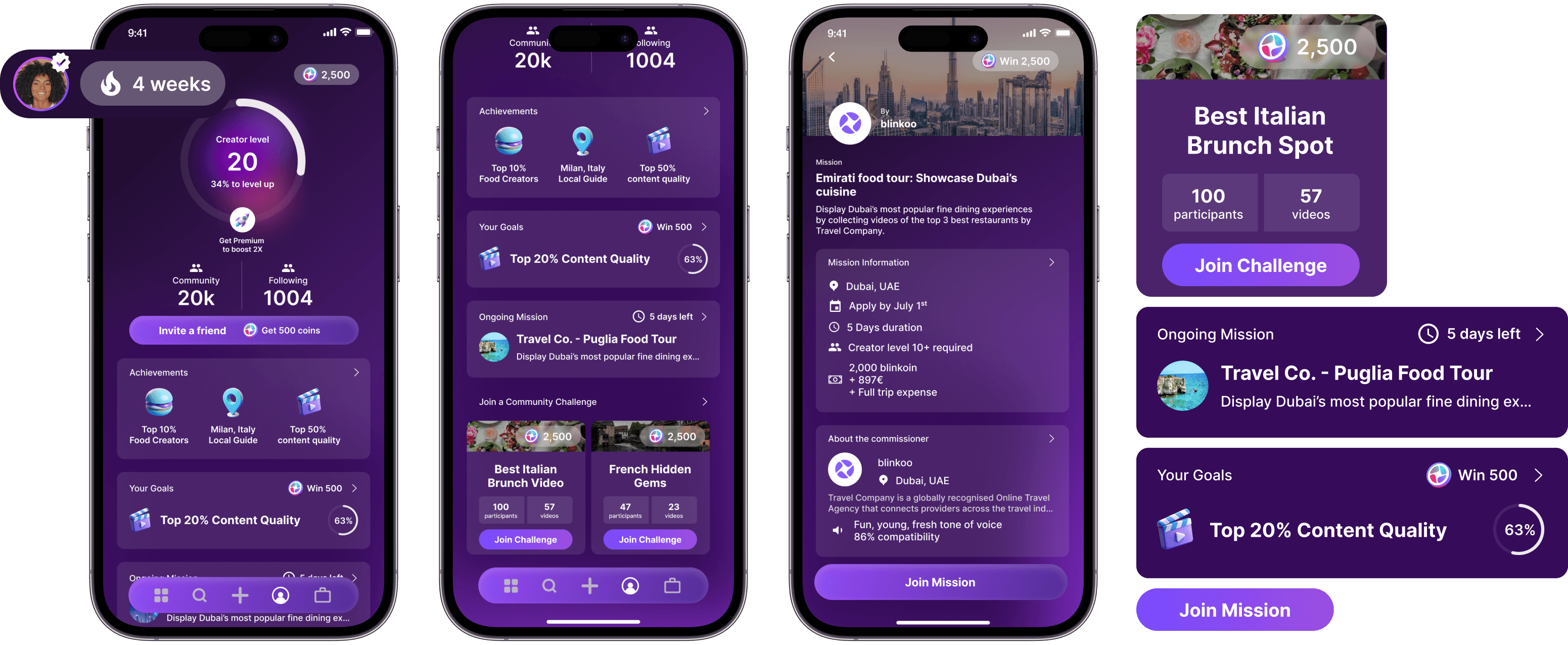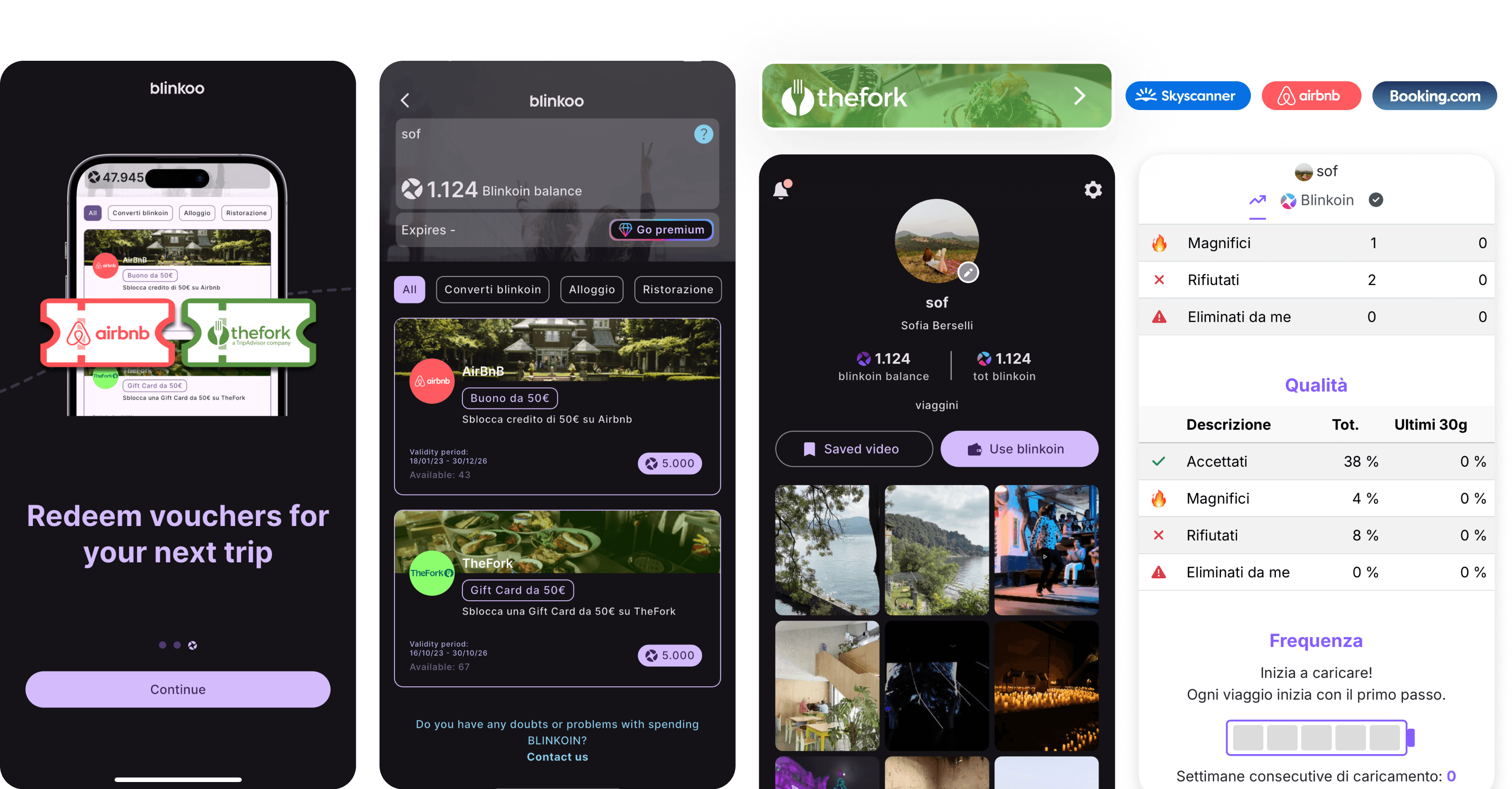 Partnerships with brands such as Airbnb, Booking.com, Skyscanner and The Fork allowed us to provide discounts for users that contribute to the community. Some rewarded actions are uploading videos consistently and interacting with the community. All of this is tracked with a system called blinkoin, you can exchange these coins for real-world discounts. For an added layer of gamification, each week there is a public leaderboard displaying the top performing creators.
