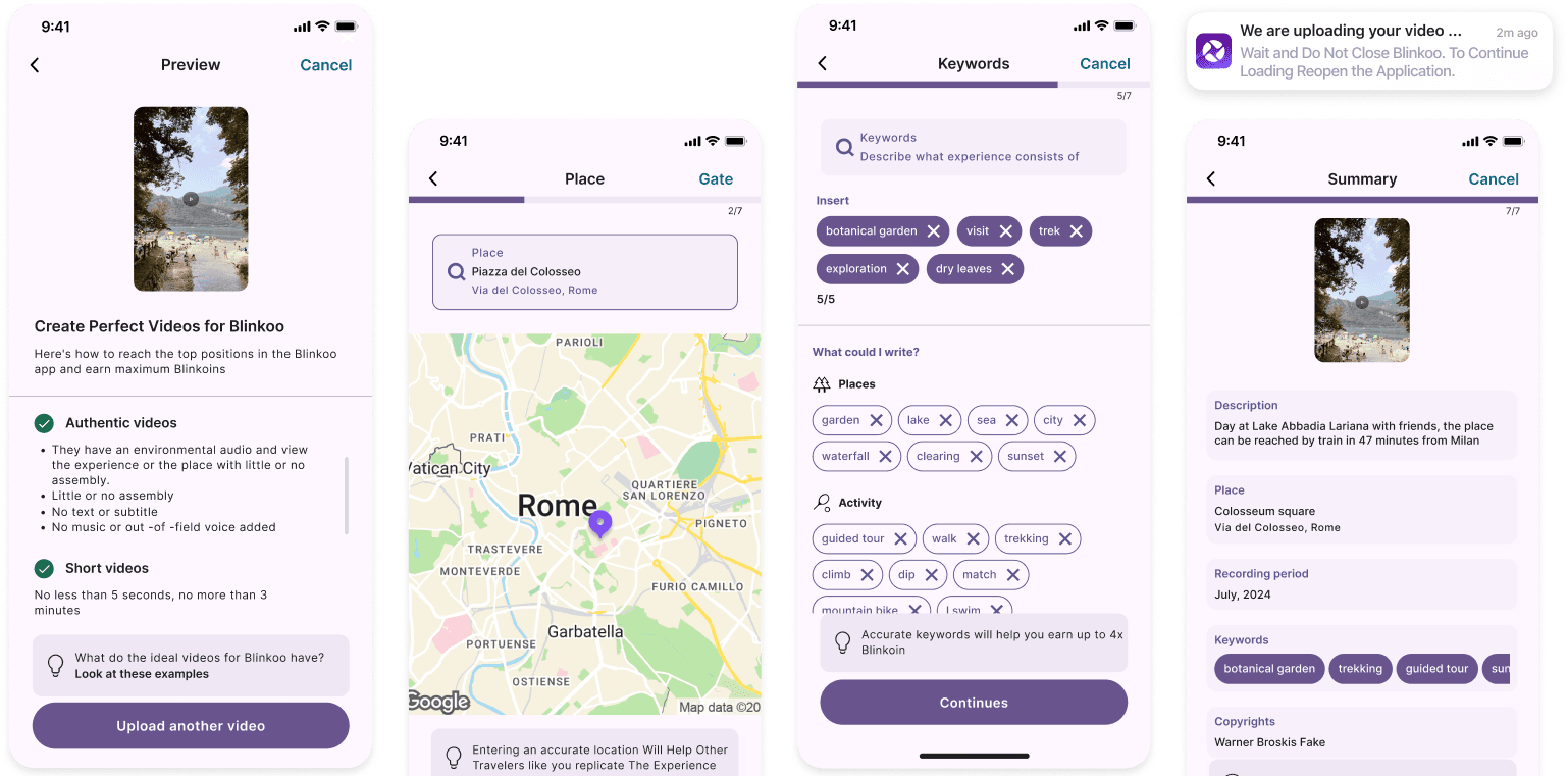 I worked with blinkoo to craft a future vision with a more strategic approach into the years after 2025. A future version of the platform could have more structured gamification features, like community challenges and client missions from companies, users could earn badges and have upload streaks, in order to be motivated to upload consistently.
